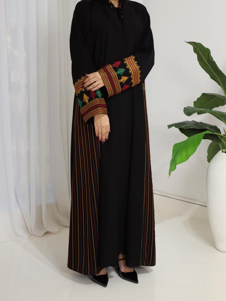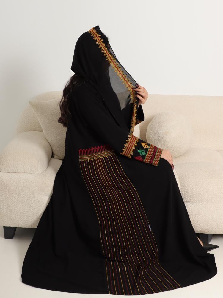 عباية سوداء اللون ، تطريز جنوبي باللون الذهبي، الأخضر والعودي، تضيف الطابع والتراث السعودي والذي يجعلكي تتمتعين بإطلالة مليئة بالاعتزاز والفخر